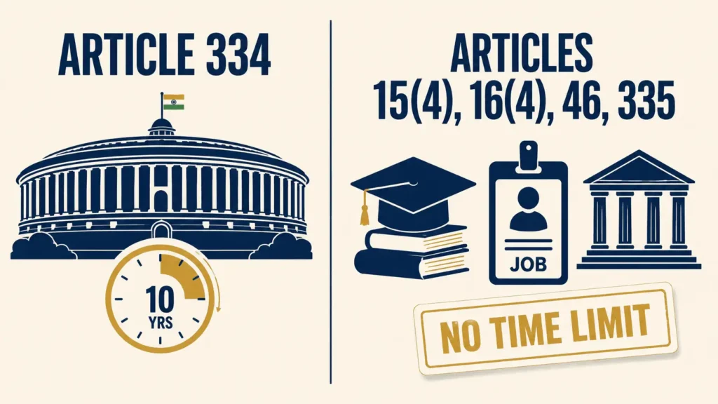 Myth 2: All reservation had a 10-year sunset built in. Fact: Only Article 334 — political seats — had the limit. Jobs, education, and DPSP provisions never did.